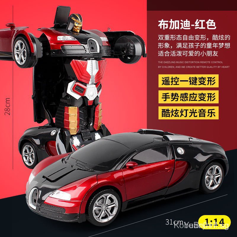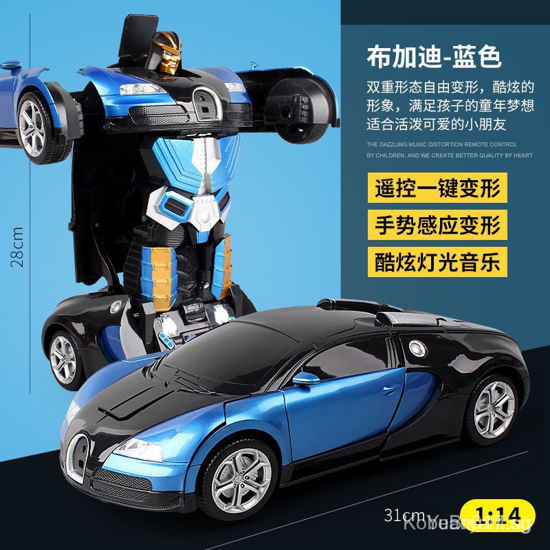 [kline]One-Click Transformer Remote Control Car Rechargeable Toy Car Bumblebee Police Car Children Toy Car-Transformation Car Robot Models Deformation Toys