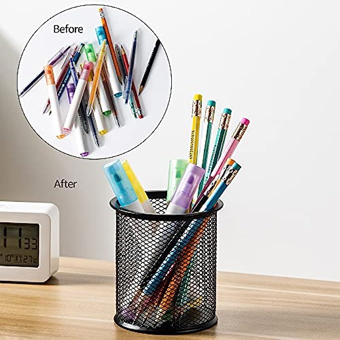 Pencil cup ideal for hold writing utensils and office supplies such as pens, scissor, rulers, brushes, and more