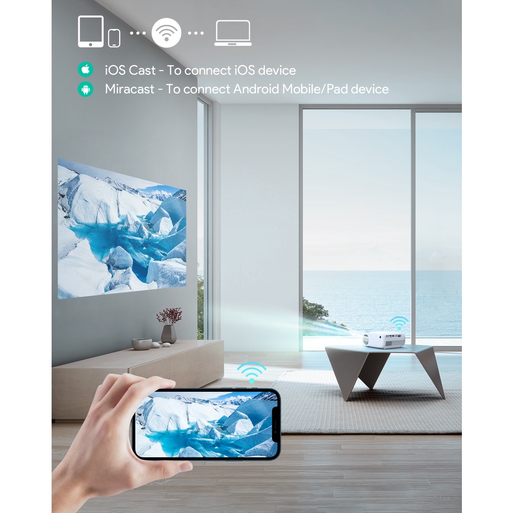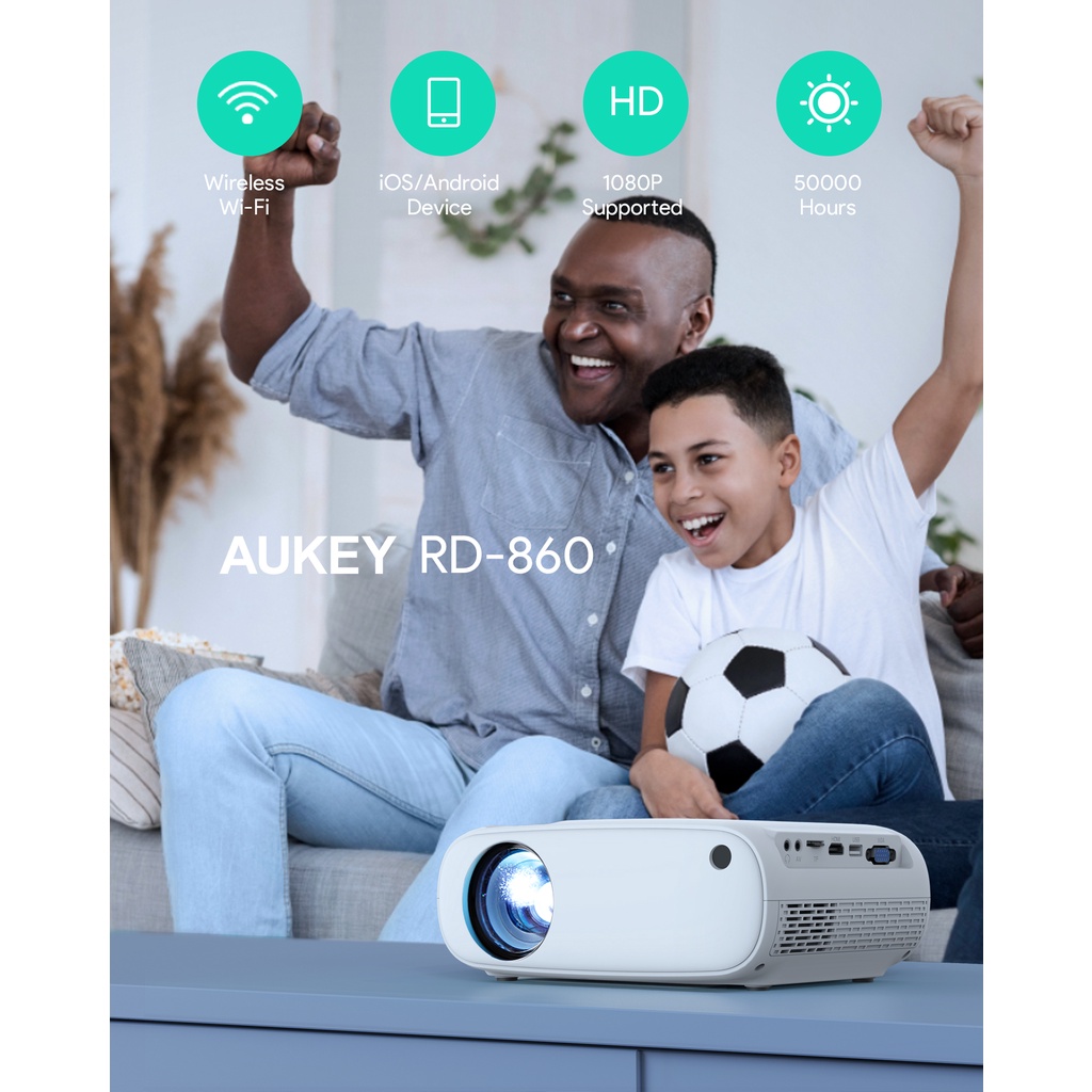 Aukey RD-860 Wi-Fi Mini Projector with 1080p Resolution Smartphone Screen Sync (24 months warranty)