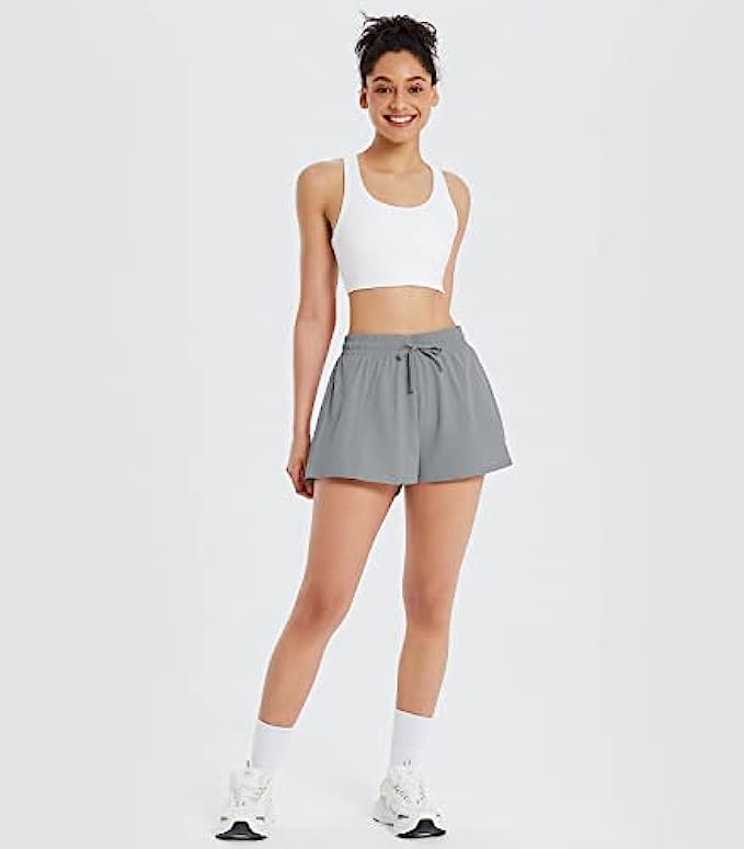 BALEAF Women’s Athletic Running Shorts with Phone Pockets 2 in 1 Wokrout Shorts