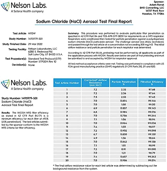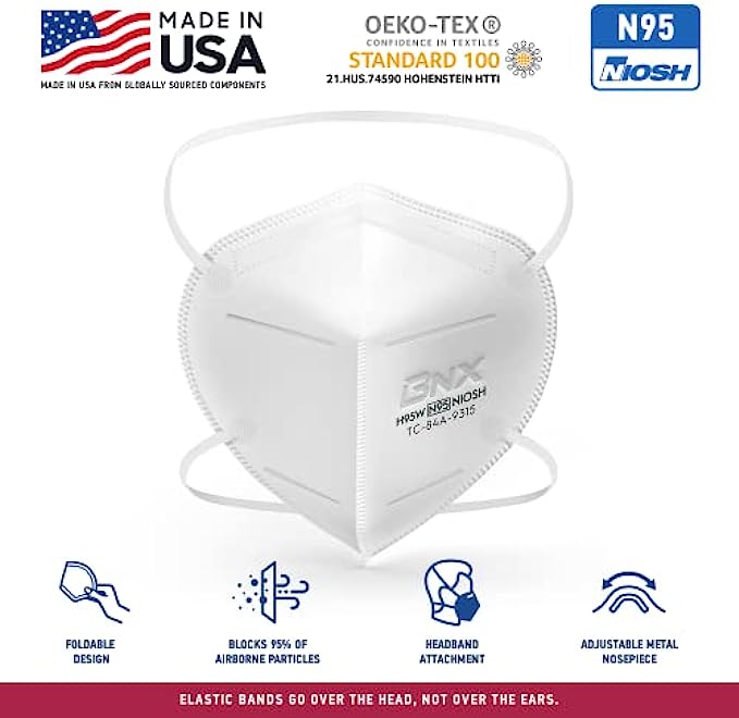 • MADE IN USA* – Manufactured by BNX Converting LLC in Houston TX, a NIOSH/CDC Approved and Registered (Registration # 3017489417) manufacturer of N95 mask respirators. *Manufactured in the USA from globally sourced components.