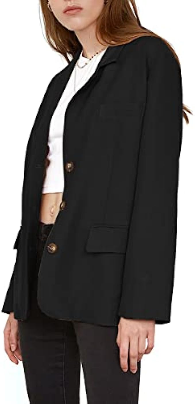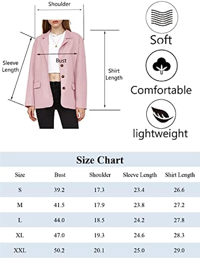 • Basic and Stylish Design: women’s blazers with basic lapel collar, long sleeves, padded shoulder, three front button, two functional flap pockets, one decorative chest pockets, solid color, relaxed fit, fully lined.