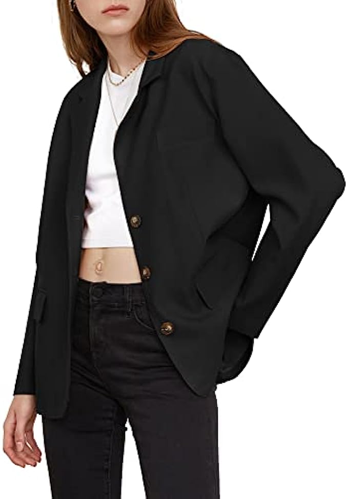 Polyester, Rayon Machine Wash Size Guide: S=US 4-6, M=US 8-10, L=US 12-14, XL=US 16-18. Lightweight and soft fabric, we accept 30 days money back! Material: Women’s blazer jackets are made of polyester and rayon, high-quality fabrication. Soft, comfortable to wear Basic and Stylish Design: women’s blazers with basic lapel collar, long sleeves, padded shoulder, three front button, two functional flap pockets, one decorative chest pockets, solid color, relaxed fit, fully lined. Blazer Jackets suitable for casual wear, business, office, work, meeting, formal / semi formal, night out, going out, etc. Whether paired with a suit or jeans, these blazer outfits for women will give you a fashions modern layered look. Washing Instruction: Machine washable, hand wash cold, air dry, low iron if needed. Note: Because the blazer using the bag packaging, some of them will arrive wrinkled, but don’t worry, it will be flat and cute after washing