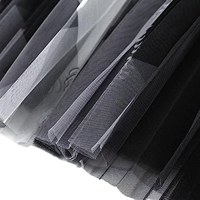 • Size: one fits most. The waist(elastic) is 60cm-98cm(23"-39"). The tulle layer's longest length is around 81cm(32") and the longest part of the skirt is close to the calf for most figures.