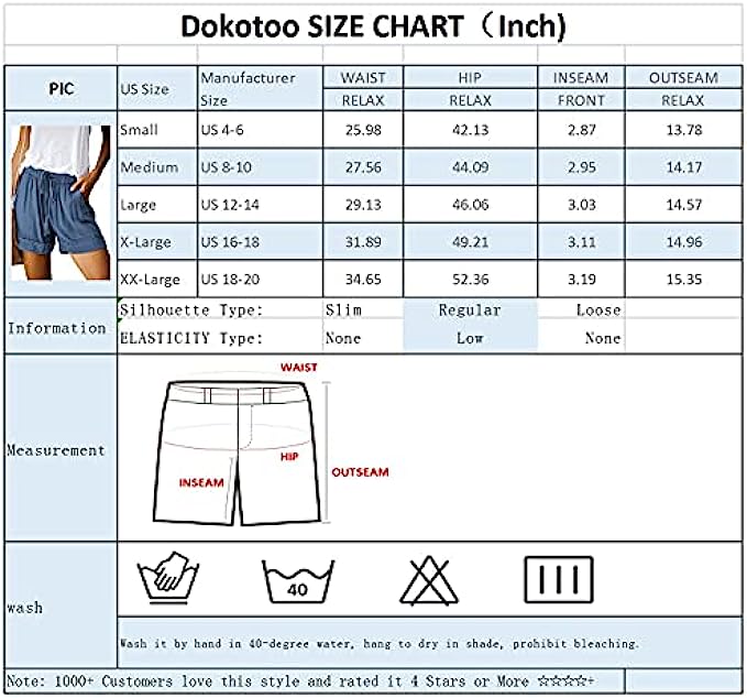 Dokotoo Womens Comfy Drawstring Casual Elastic Waist Pocketed Shorts