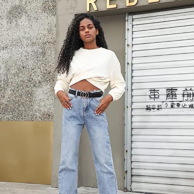 • O-RING BUCKLE: The womens belts for jeans made of high quality PU leather with gold double O-Ring buckle.