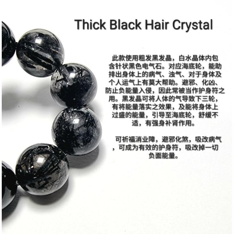 Eunegems Customize Natural Black Hair Crystal Black Tourmaline Tektite Bracelet 辟邪款手串