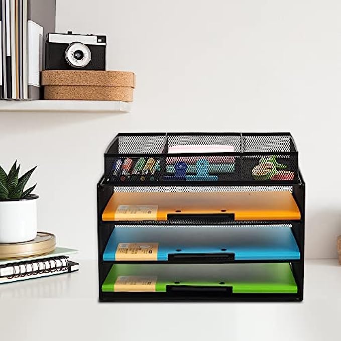 • 3-TIER STACKED SHELF: Keep your space organized and clutter free. Open design lets you identify the contents of each compartment quickly. Perfect solution to keep your desk organized in a different new way.