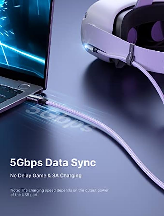 • High Speed and Fast Charging: Supports up to 5 Gbps data transfer speed, which allows it to connect Oculus Link Program with no lag, enhancing your gaming experience without interruption or delay. 3A charging speed makes it possible to play and charge simultaneously if the port's output power is enough.