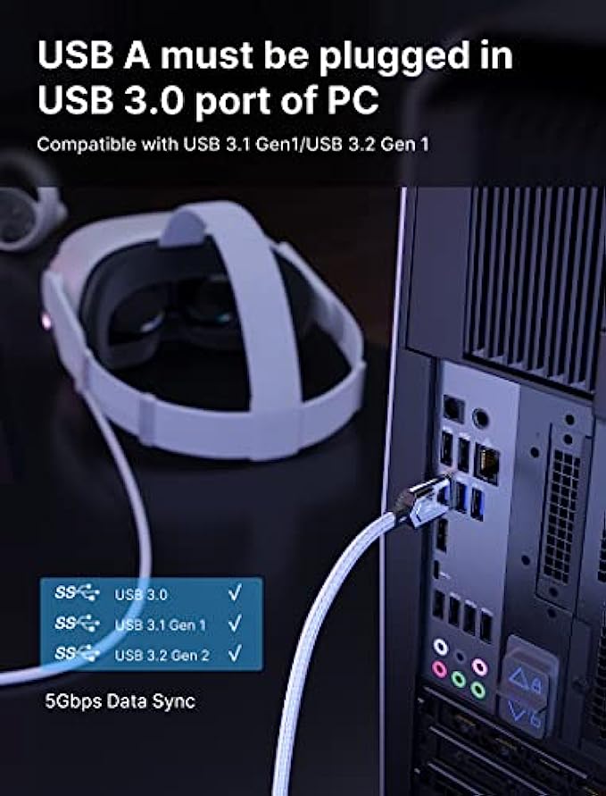 • Compatible with Oculus/Meta Quest 2: JSAUX link cable connects Oculus Quest 2 to a gaming PC so that you can play all Oculus Rift apps and Steam VR games, providing perfect PC VR experience.