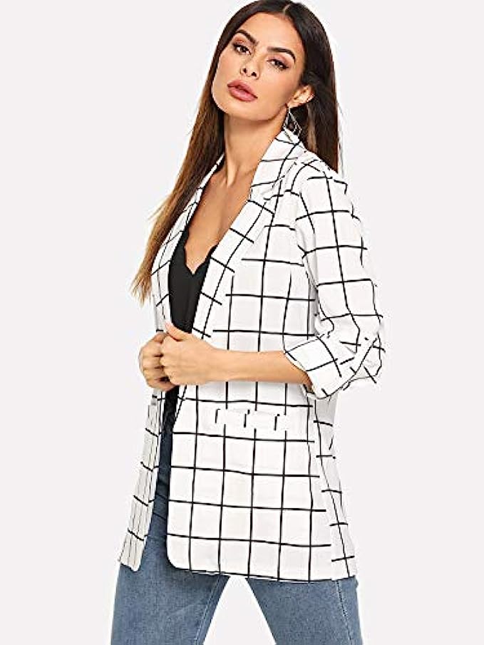 Milumia Women’s Open Front Blazer Casual Lightweight Plaid Roll Up Sleeve Jacket Shirt