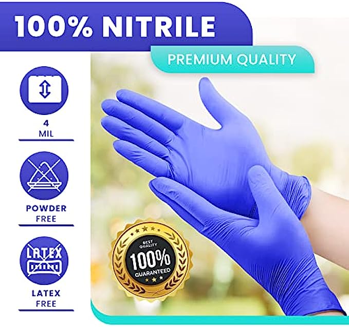 • BEST DISPOSABLE GLOVES? OWELL nitrile gloves are made of 100% premium medical-grade, and food-safe nitrile materials. These high-quality and perfectly balanced nitrile gloves are super-strong, 4mil thick, chemical, tear, and puncture-resistant. They offer incredible stretch and durability, are ambidextrous, latex-free, powder-free, vinyl-free and finger textured providing a safe and secure grip with every use.