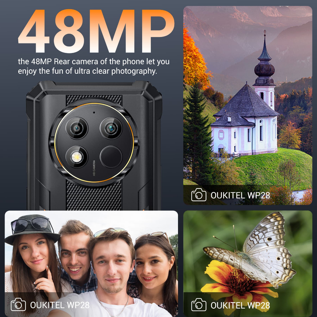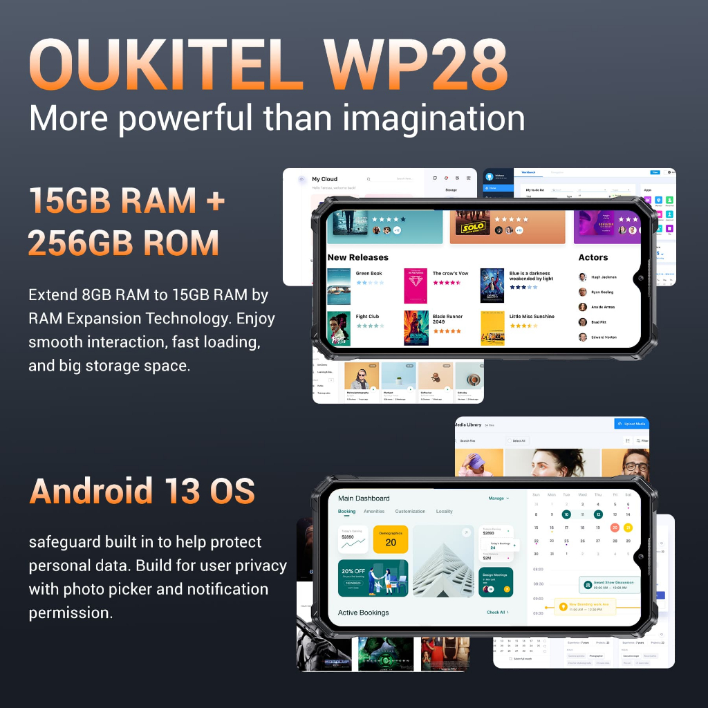 Oukitel WP28 Rugged Smartphone 6.52‘’ HD+ 10600mAh 15GB+256GB Android13 Mobile Phone 48MP Camera Cell Phone