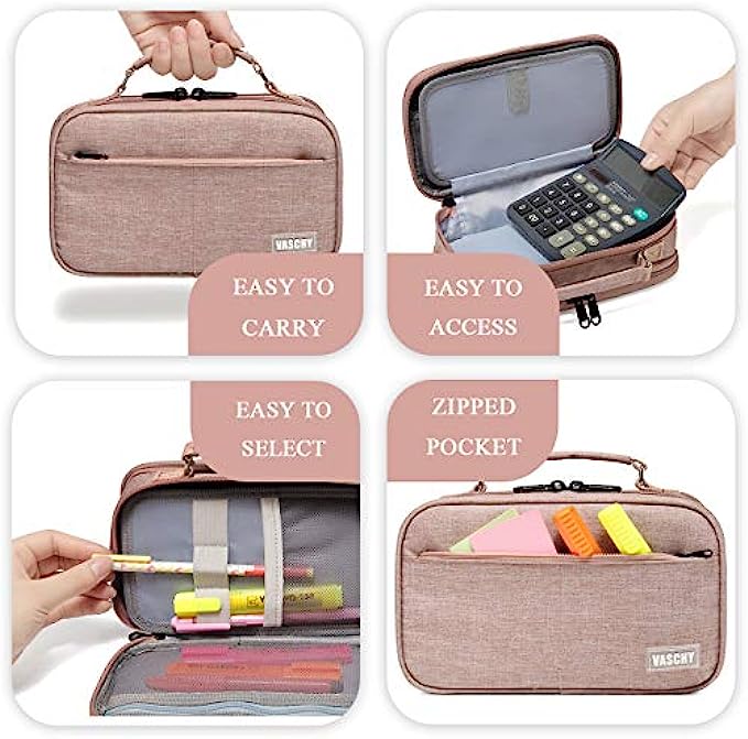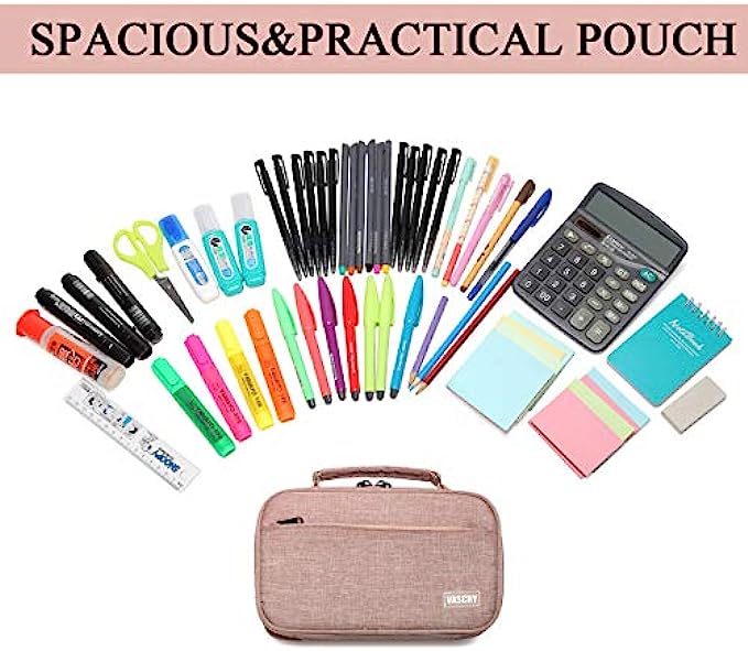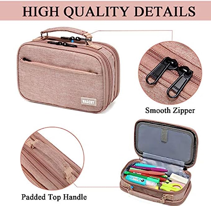 • ✎EASY TO CARRY: The Vaschy double zipper pencil case is designed with a convenient top handle to carry. It is made of sturdy polyester, this case is built to last.It is lightweight yet durable and highly tear-resistant, making it a perfect material for making pen cases that will stand up well to regular use.