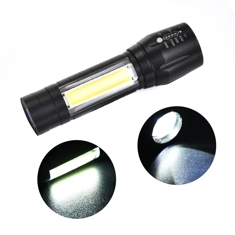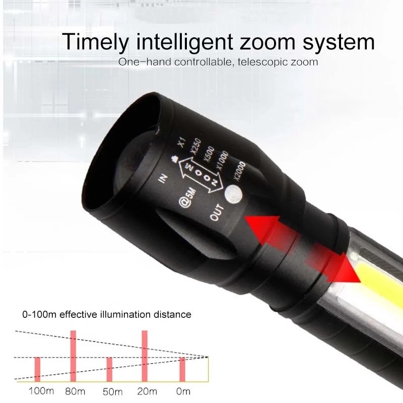 Portable T6 LED Flashlight / USB Rechargeable Zoomable Flashlight / Lantern COB Torch Lamp / Camping Working Out door Torch