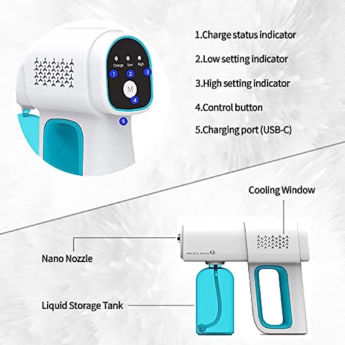 • 【Handheld Wireless Fogger】You can easily clean full rooms in under 5 minutes. More effective than manual hand wiping, pump spraying or mopping. The spraying range is about 2-4 feet. Nano sprayer gun can be sprayed directly on the surface of the human body, fabrics, home appliances and other objects.