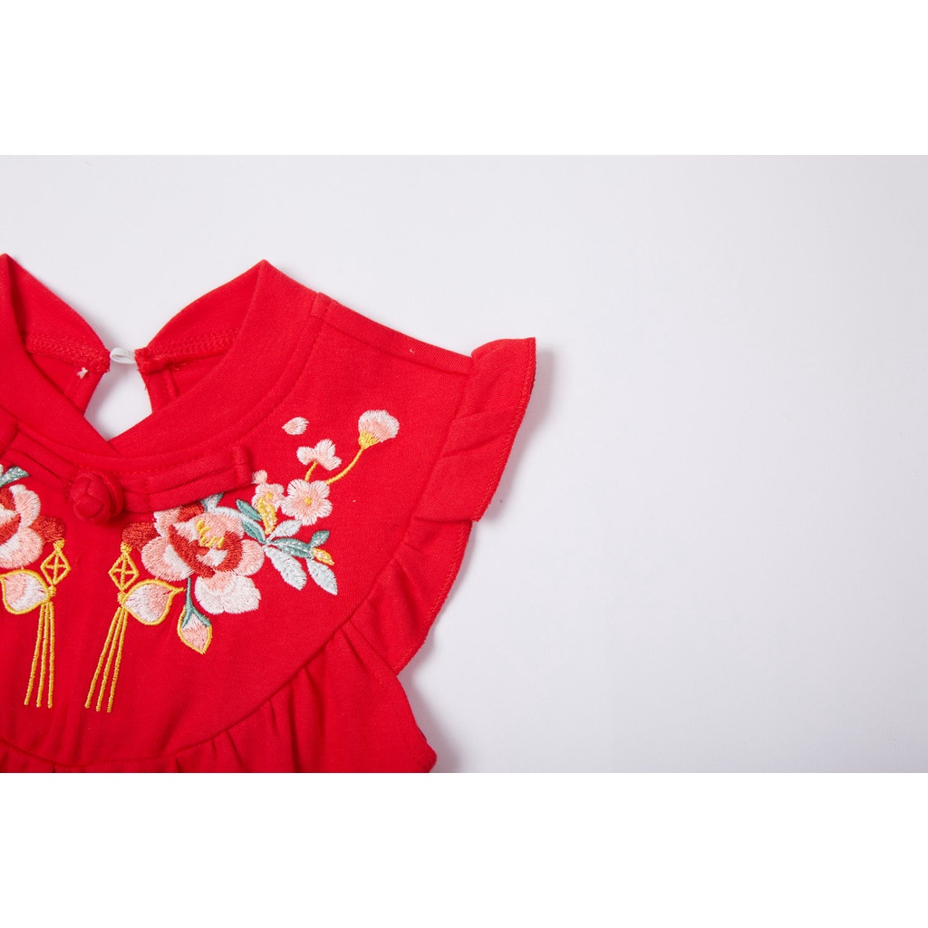 Racial Harmony Day Costume Baby Girl Cheongsam Romper Red w Pink Flowers Chinese New Year Romper CNY Clothes