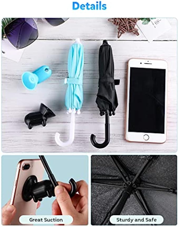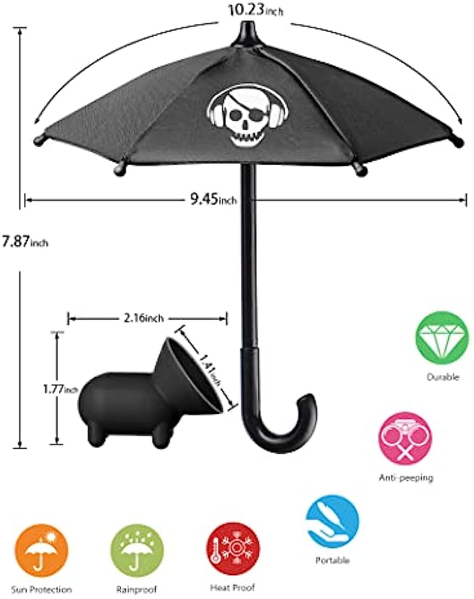 ✅【Cute Phone Umbrella】Novel and practical design! Outdoor essential cell phone umbrella with anti-glare, anti-overheating and rain-proof functions. Make your screen more comfortable and protect your mobile device. It can also be used as a mobile phone stand and a photo prop. ✅【Phone Umbrella Sun Shade】The phone umbrella can also prevent the mobile phone from overheating due to direct sunlight on the screen, and the phone screen can be seen clearly even in strong sunlight. You can also use it in a high temperature environment such as the car, which can well protect the phone and battery. ✅【Strong Suction Phone Holder】The piggy suction cup holder has strong adsorption capacity and can be used as a cell phone holder alone. The suction cup phone holder fits almost any smartphone, most smooth phone cases, and some smaller tablets. ✅【Multiple Creative Uses】This phone umbrella can be used as a photo tool or as a gift to others. Giving you enough space for association, it can bring a lot of fun to their daily use. ✅【Great Service】If you have any problem with our product, Please feel free to contact us. We will respond you in time, And provide you with a satisfactory solution. Package includes: 1x Phone Umbrella, 1x Piggy Phone Holder, 1x Storage Box.