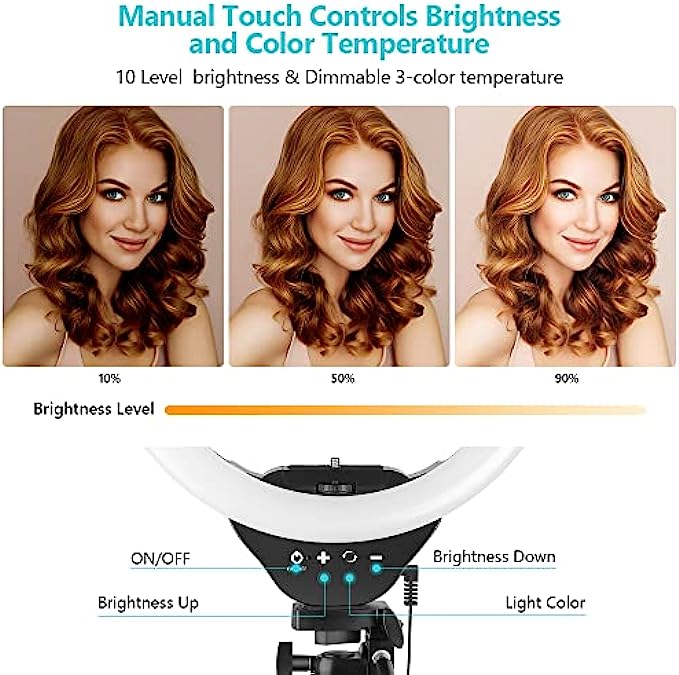【High Brightness & Clever Touch Control】Sensyne selfie ring light features a high sensitivity touch panel design that has a longer life than traditional mechanical buttons. It provides full control to easily adjust the 3 color modes (cool white, warm yellow and daylight) and 10 brightness levels to meet your different needs. Perfect for Photographers, YouTubers, Vloggers, TikTokers, etc.