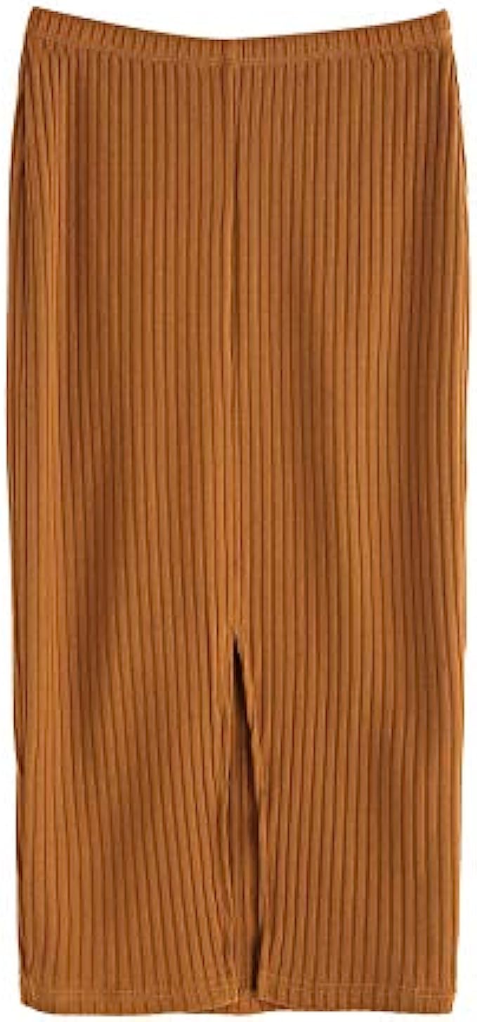 SheIn Women’s Basic Plain Stretchy Ribbed Knit Split Full Length Skirt