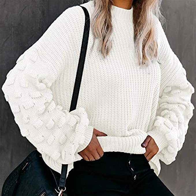 70% Acrylic, 30% Cotton Imported Hand Wash Only Knit sweater features a classic crew-neckline, and long puff sleeves with a basket weave pattern and ribbed cuffs and hem Fashion baggy style and extra soft fabric, perfect pairing for leggings and skinny jeans etc Chunky knit pullover sweater keeping you warmth in cold weather Designed and constructed for the fit and comfort of the American body, please refer to our detailed size chart before ordering Hand Wash Cold/Flat Dry