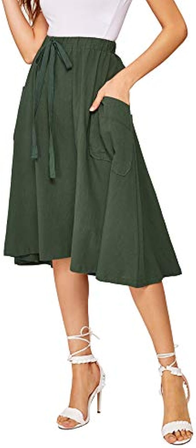 SweatyRocks Women’s Casual High Waist Pleated A-Line Midi Skirt with Pocket