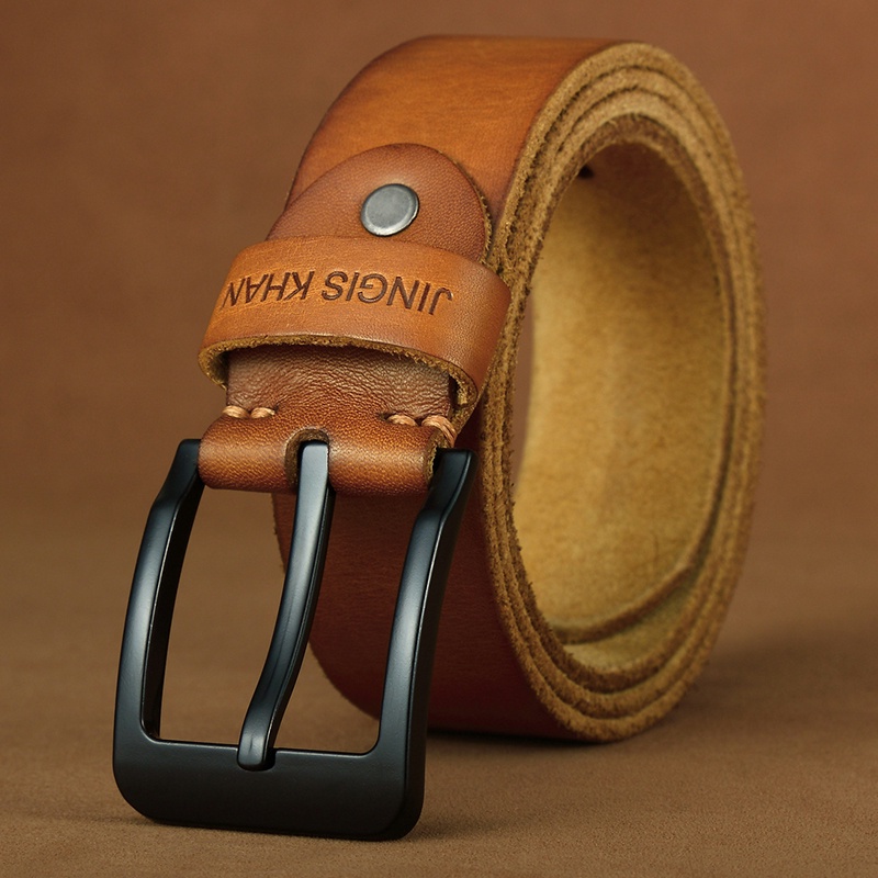 Ten years continuously men handmade leather belt and Unbreakable Men’s Genuine Alloy Pin Buckle First Layer Cowhide Whole Cut
