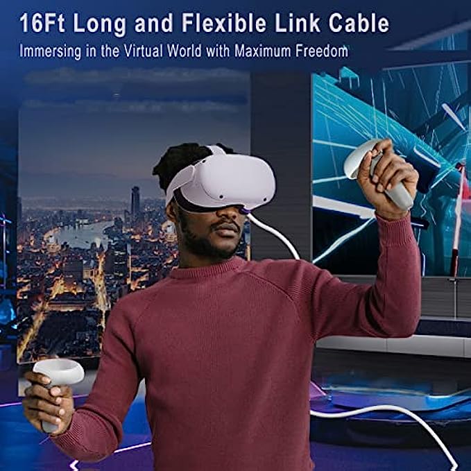 • 【16ft Flexible Long Link Cable】16 ft long link cable gives you maximum freedom of movement without being restricted when you are immersed in the VR world.