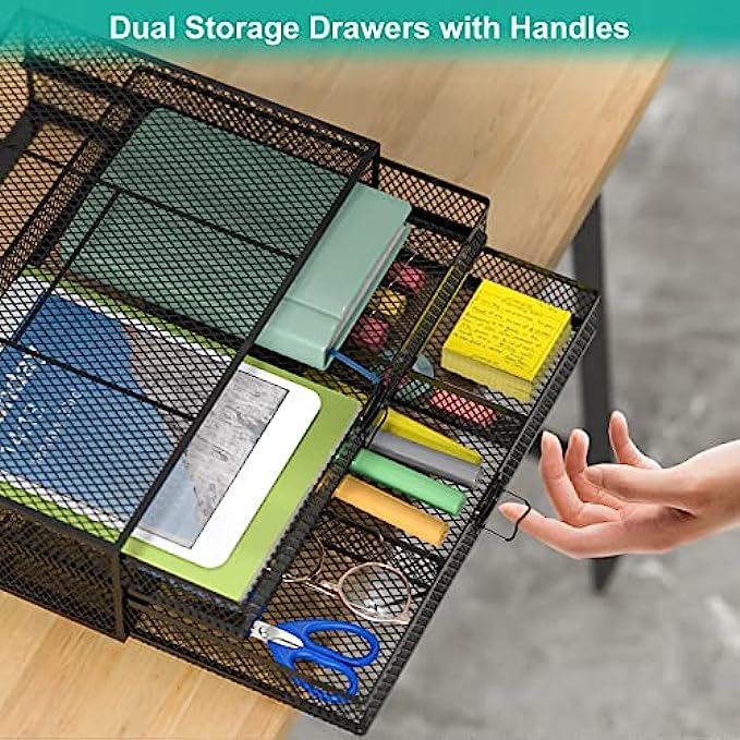 WALI Metal Mesh Monitor Riser Desktop Stand with Storage Drawers for Computer, Laptop, LED, LCD, OLED Flat Screen Display, and Printer (STT006-B), Black