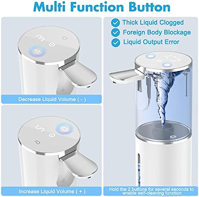 • HIGH COMPATIBILITY AND LARGE CAPACITY: The large 16.37 oz bottle is compatible with many detergents. If you use various liquids such as body wash, cleanser, facial cleanser. Bright LED lights and a visible window allow you to see how much soap is left.
