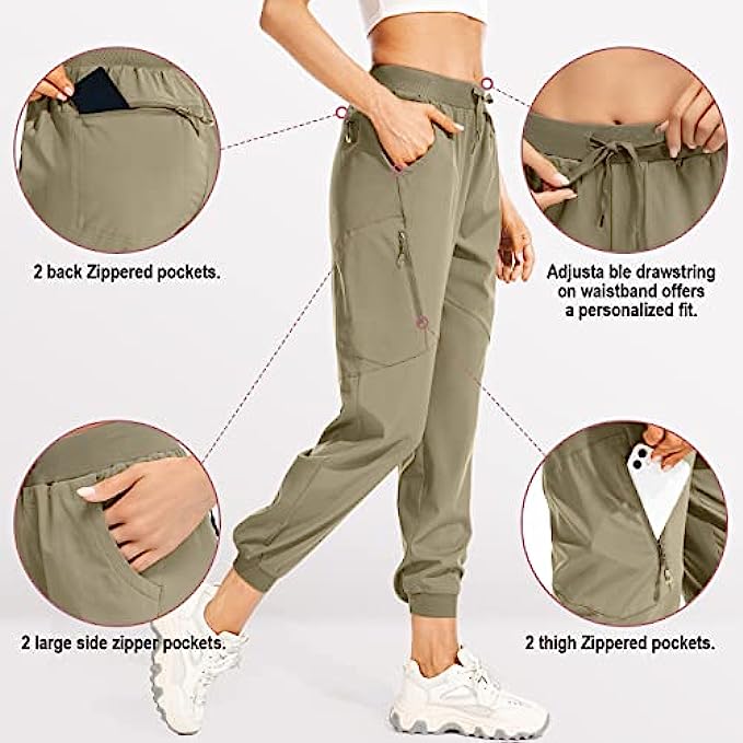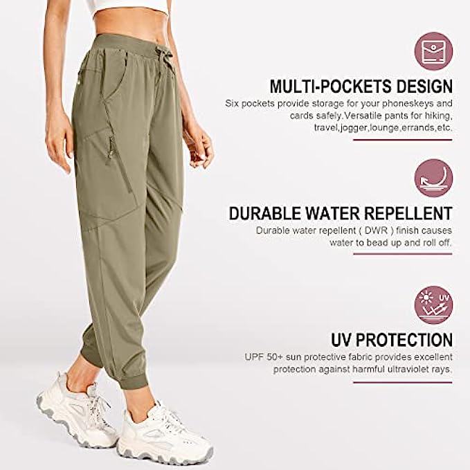 92% Polyester, 8% Spandex Zipper closure Women's Quick Dry Hiking Pants 92% Polyester, 8% Spandex; Water repellent finish dries quickly to keep dry. Hiking Pants Women: UPF sun protection fabric reduces your exposure to harmful UVA/UVB radiation Womens Cargo Pants: Side elastic waistband with belt loops for adjustability. 2 handy side,zipper pockets, 2 back pockets, the cargo workout track pant has a hidden headphone cable hole that you can listen to the music while jogging without affecting the look of your pant. Casual Long Shorts for Women: Sits at waist / loose fit / Elastic wasitband with drawstring for a adjustable fit. Stretchy ankle cuffs for a sporty look and easy wear linlon Women's Hiking lounge Cropped Joggers Pants are suitable for Spring, Summer, and Autumn. Good choice for outdoor activities like hiking, camping, hunting, fishing, cycling, gym fitness, lounge, athletic, travel, errands, exercise, workout, fitness,etc boating, rock climbing, running, jogging causal wear and even home wear.