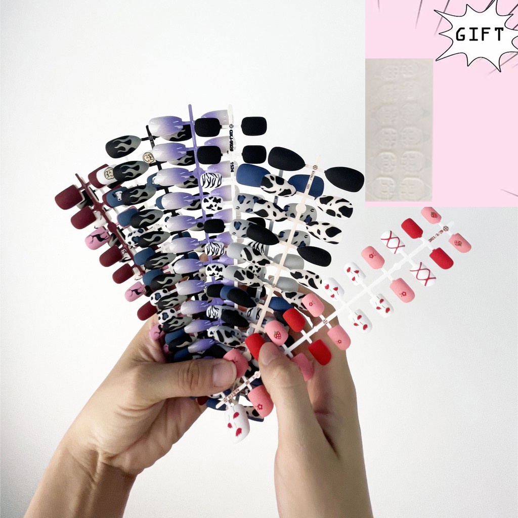 with 24 Pcs Sticker Glue 24Pcs Press On Nails Nail Art Patch Fake Nails Flase Nails Waterproof Detachable Nail Patch
